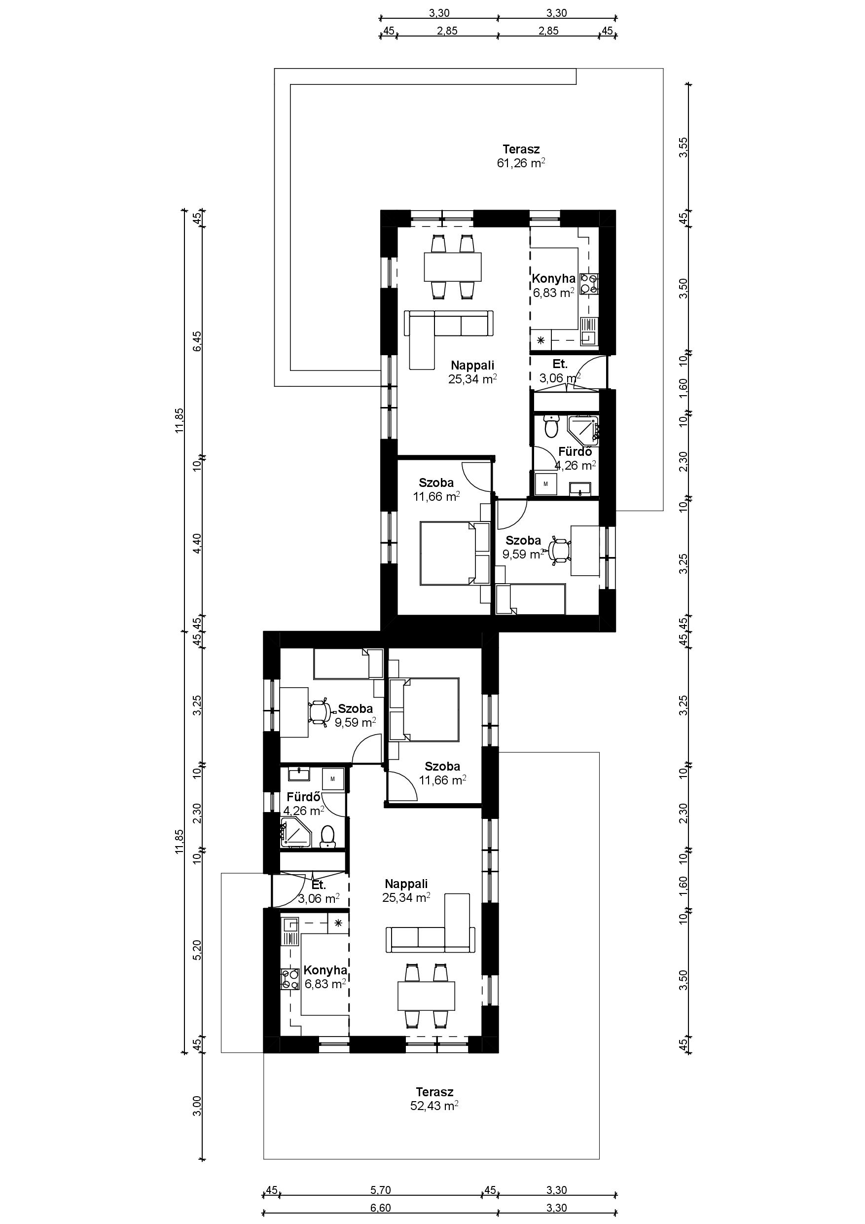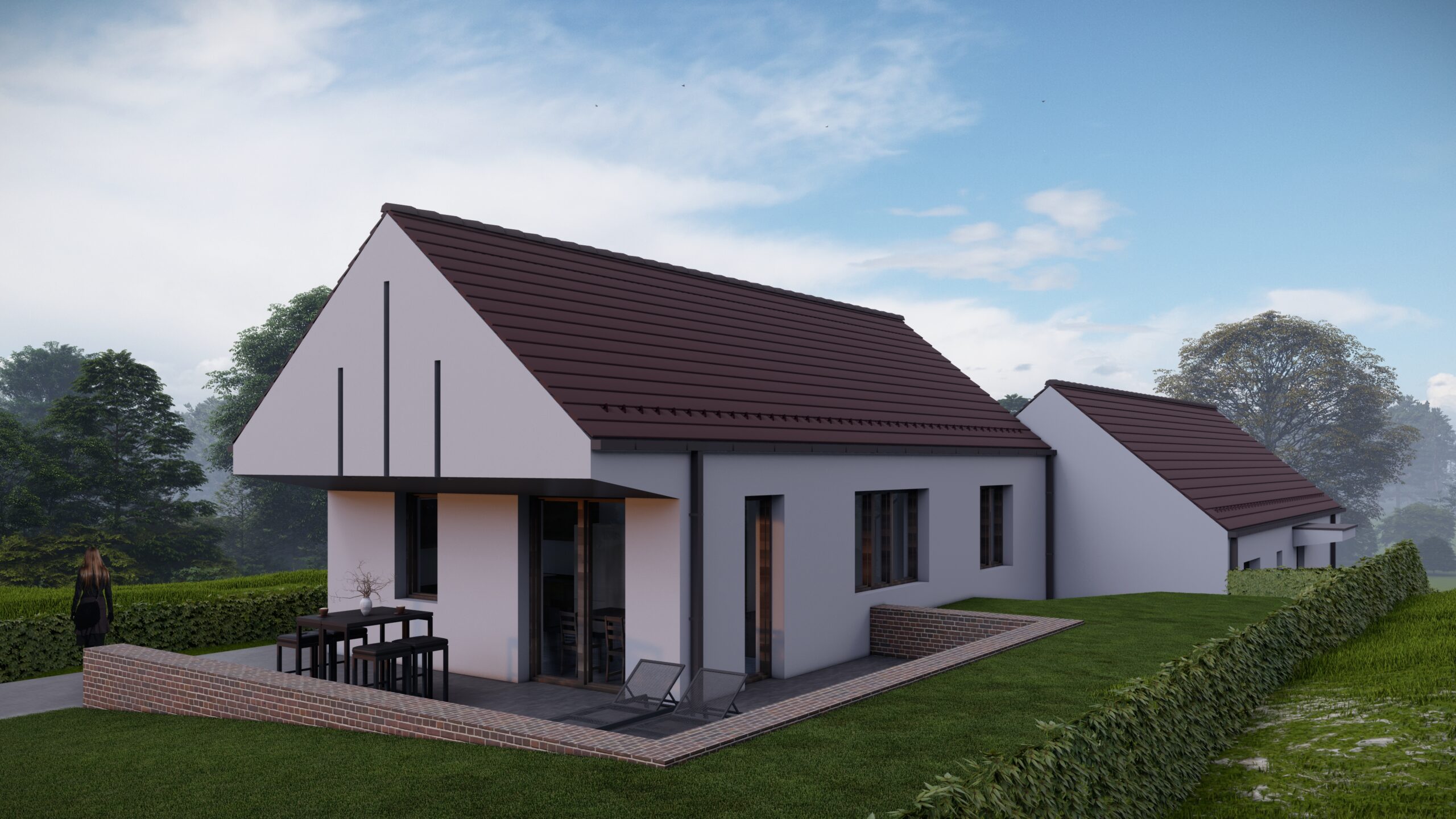 A ház kulcsrakész kivitelezéssel épül meg, választható burkolatokkal, szaniterekkel és még sok egyébbel.